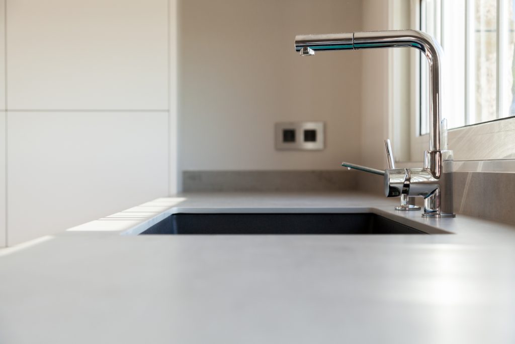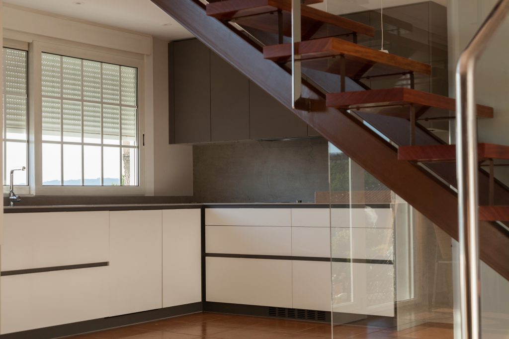 Decoiglesias propone una cocina de líneas limpias con un panelado sin tiradores, electrodomésticos integrados y grifería minimalista. Materiales naturales en todas las superficies, combinados con tecnología de alto rendimiento, como Silestone y acero inoxidable. Un concepto abierto que permite integrar la cocina con el resto de la casa.