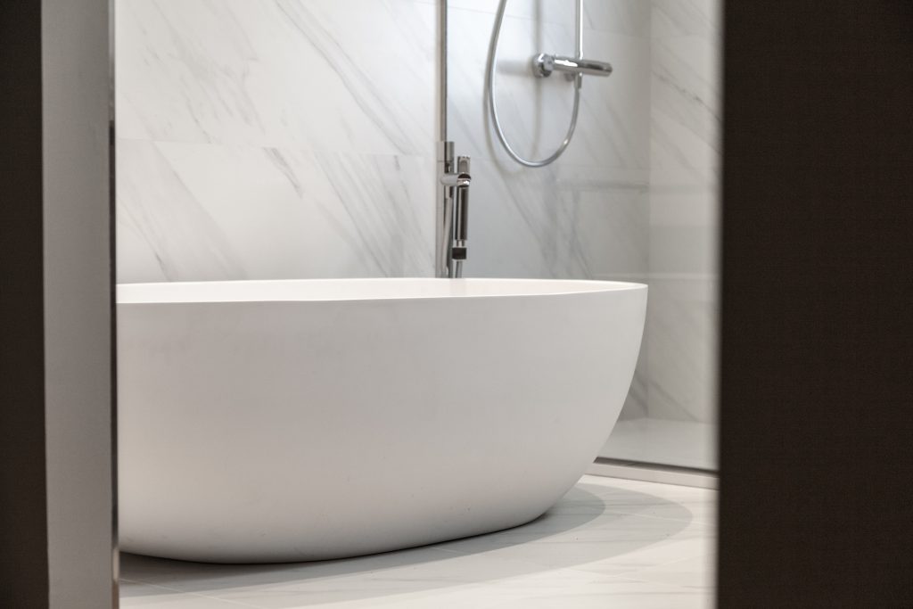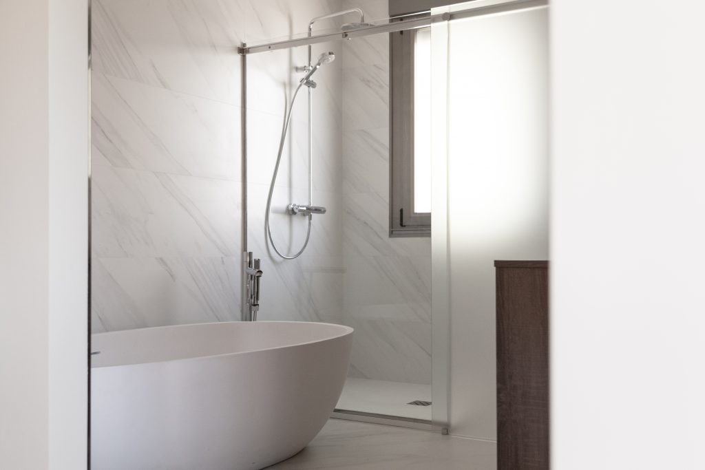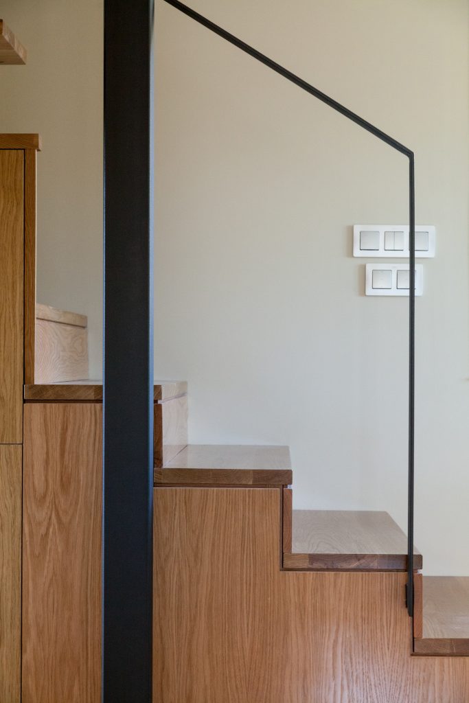 Se conservan y muestran varios elementos de la vivienda original, como los muros de separación de piedra. Como contrapunto a estos elementos, se incorporan otros como las escaleras principales o los armarios empotrados, diseñados a medida sin tapajuntas. A la hora de diseñar los baños, se busca algo cómodo y funcional que a la vez no pasase desapercibido. Muebles que parecen hechos a medida y una bañera de cine en la suite principal. Toda la vivienda está iluminada con luces led, más seguras, menos contaminantes y muchísimo más duraderas que los apliques tradicionales.